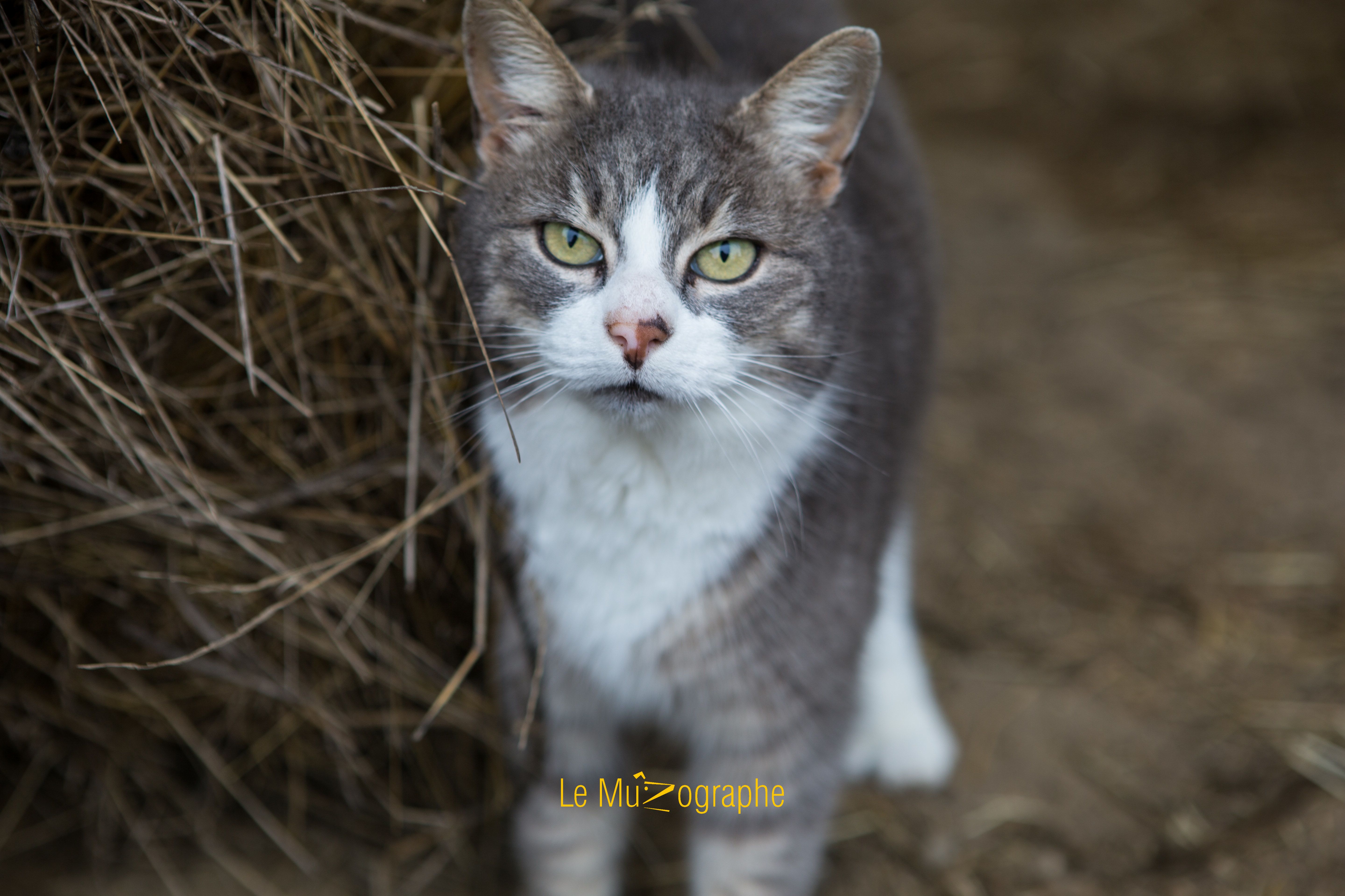 Amenée à photographier une chèvrerie, je suis en plein reportage sur mes biquettes, au milieu de la campagne, quand en allant à la rencontre des chevreaux, sur le chemin de la nursery, des miaulements répétés m’interpellent…