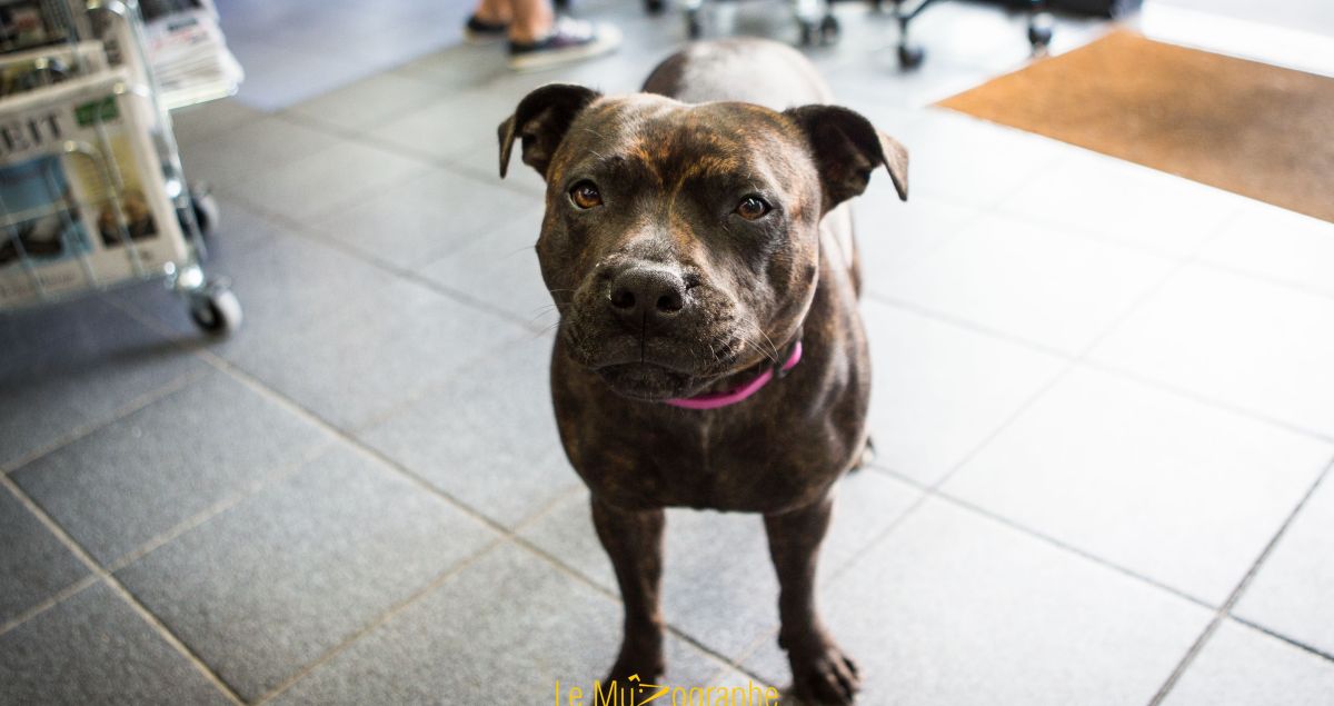» Gazette, c’est de la récup » dit sa maitresse avec beaucoup d’humour (et d’amour). » Quand je l’ai adopté, elle n’était pas vaccinée, pas propre, mal nourrie et surtout pas sociabilisée ». Etonnant quand on la voit évoluer avec les clients.