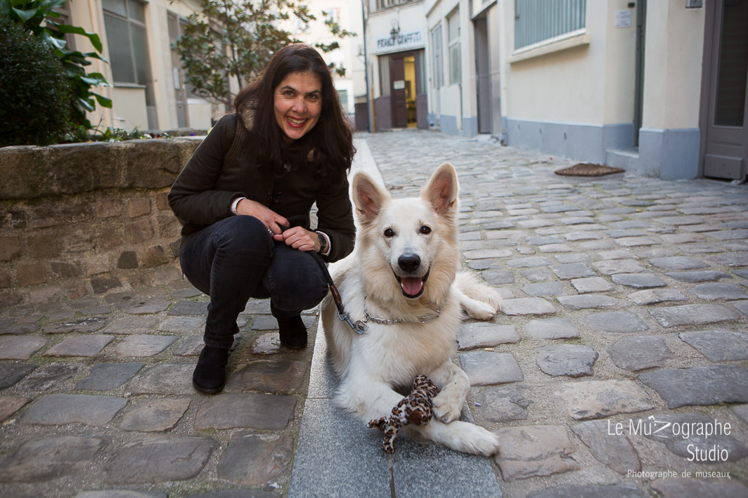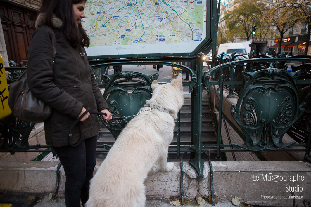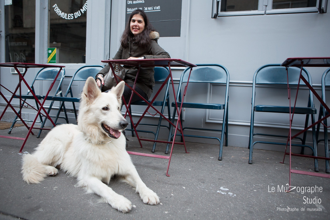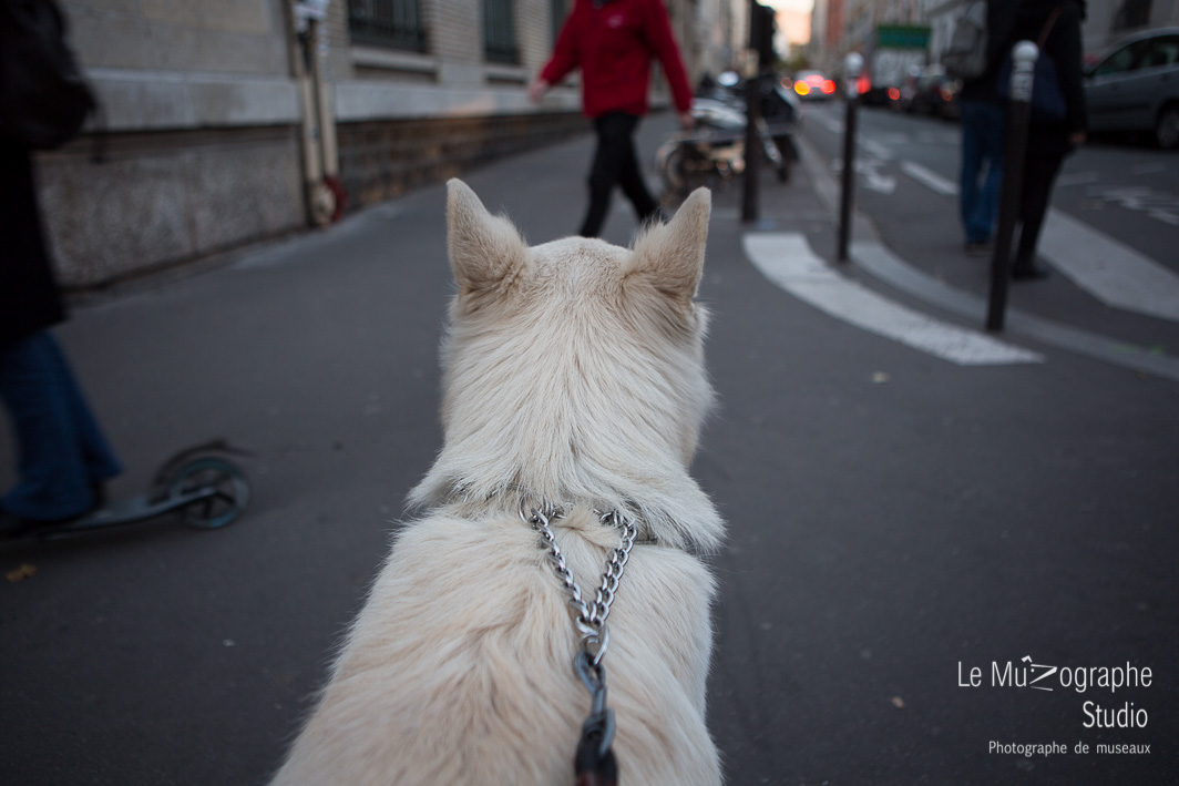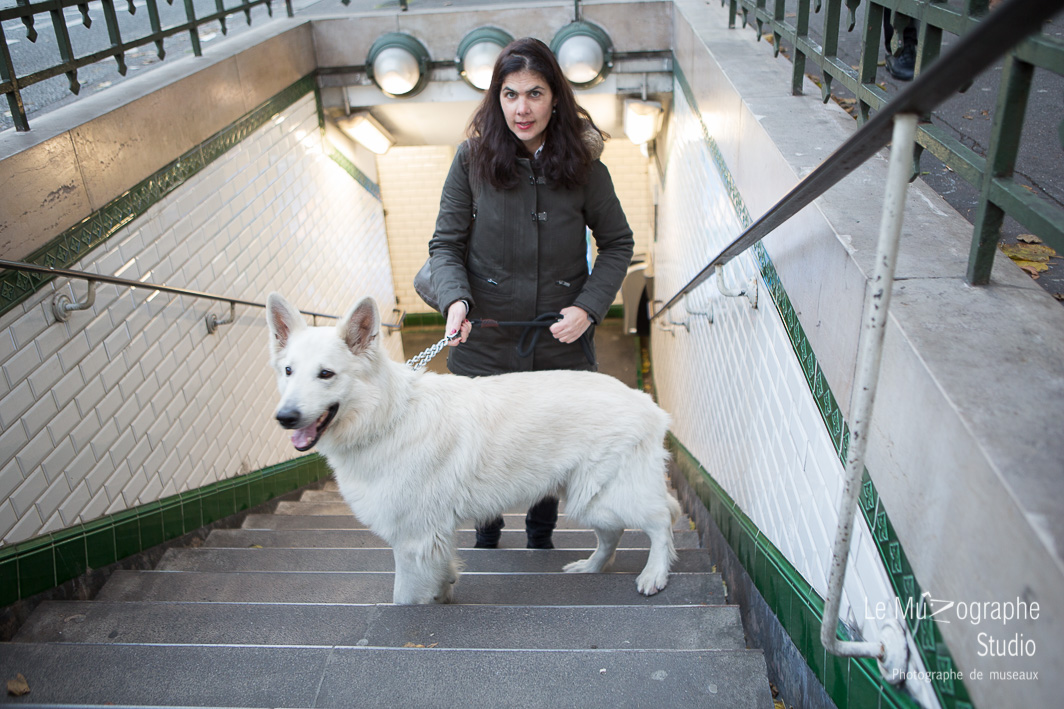 Avons profité du parcours habituel de la balade de Kazan, dans son quartier d’Oberkampf : son square, ses passages, sa station de métro, et… son boucher ! Impossible de passer inaperçu avec ce duo ! Kazan, le flamboyant et sa douce maîtresse ont emporté plus d’un sourire en nous voyant.