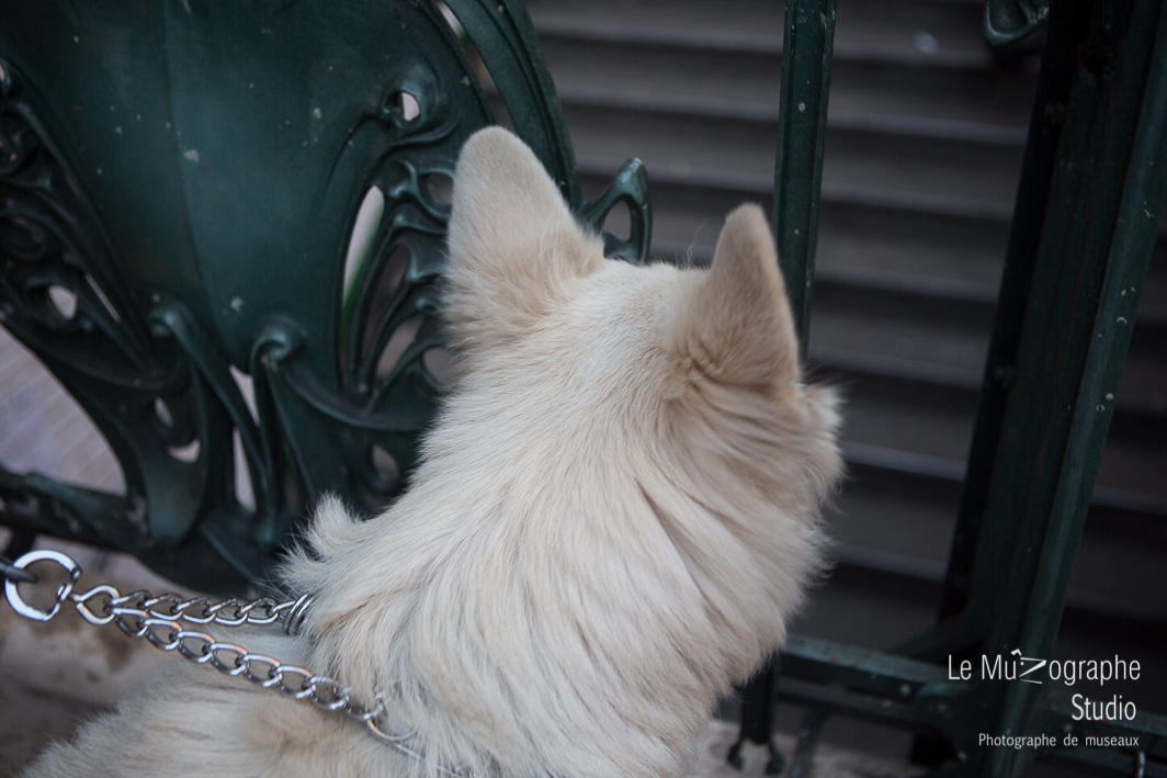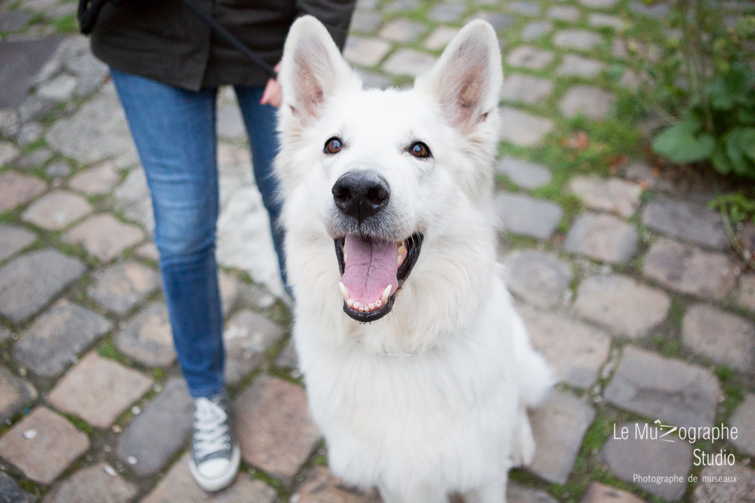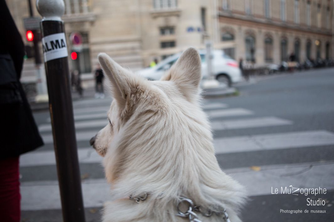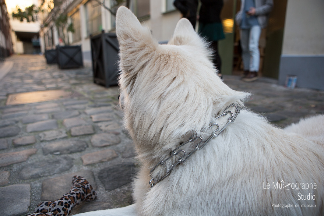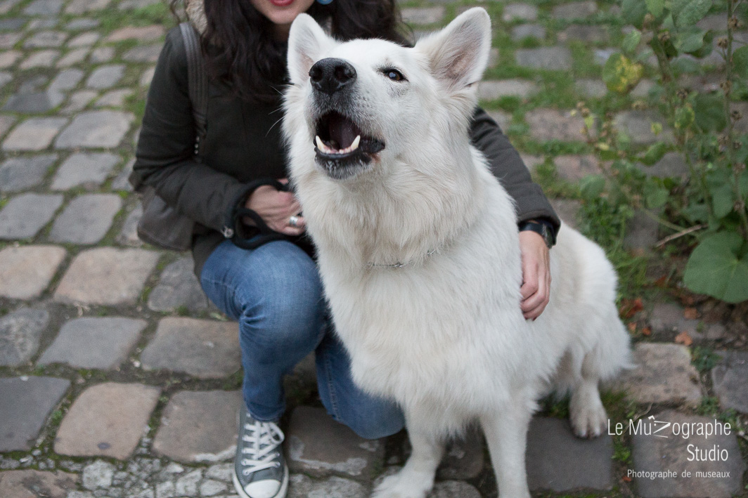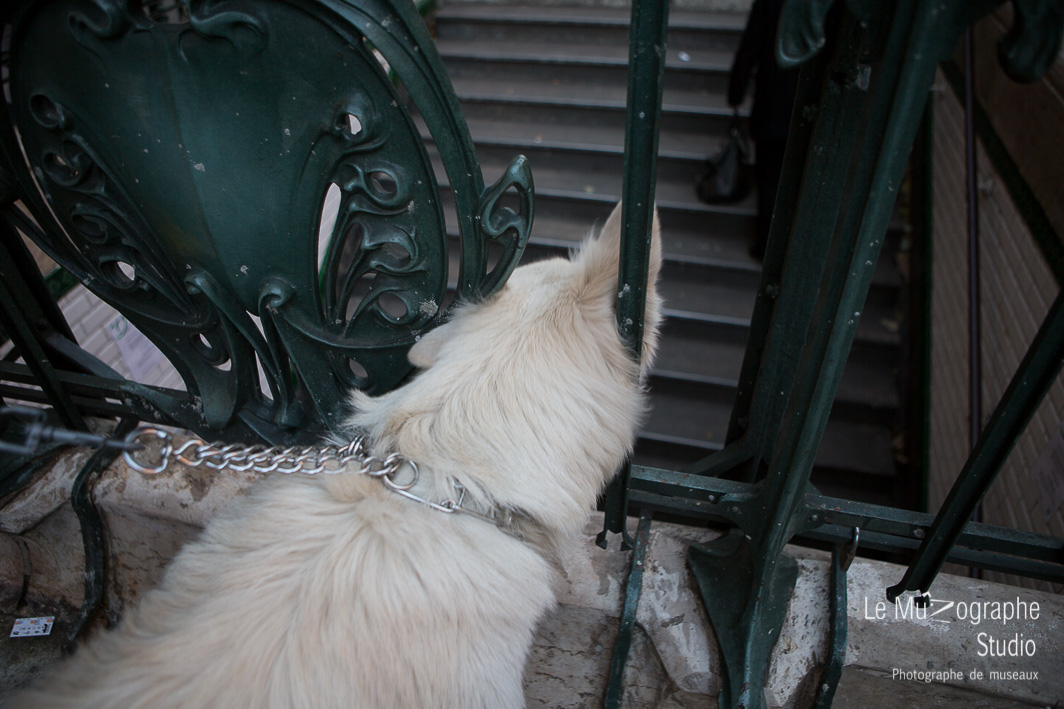 Avons profité du parcours habituel de la balade de Kazan, dans son quartier d’Oberkampf : son square, ses passages, sa station de métro, et… son boucher ! Impossible de passer inaperçu avec ce duo ! Kazan, le flamboyant et sa douce maîtresse ont emporté plus d’un sourire en nous voyant.