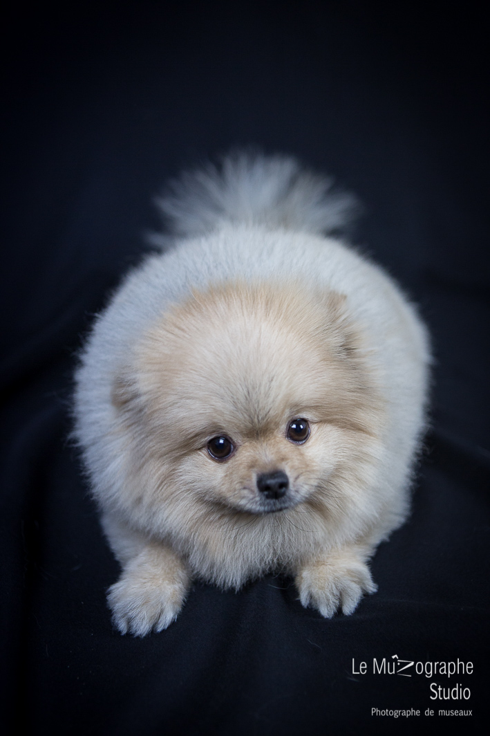 Une énorme boule de poils, une énorme boule d’amour, avec juste 2 bouts d’oreilles au dessus de la tête. J’ai franchement craqué sur sa frimousse ! Très attachée à sa maîtresse, la belle Spitz a nécessité une séance tout en patience, pour qu’elle m’accorde un peu de sa confiance et ose se détendre face à l’objectif.