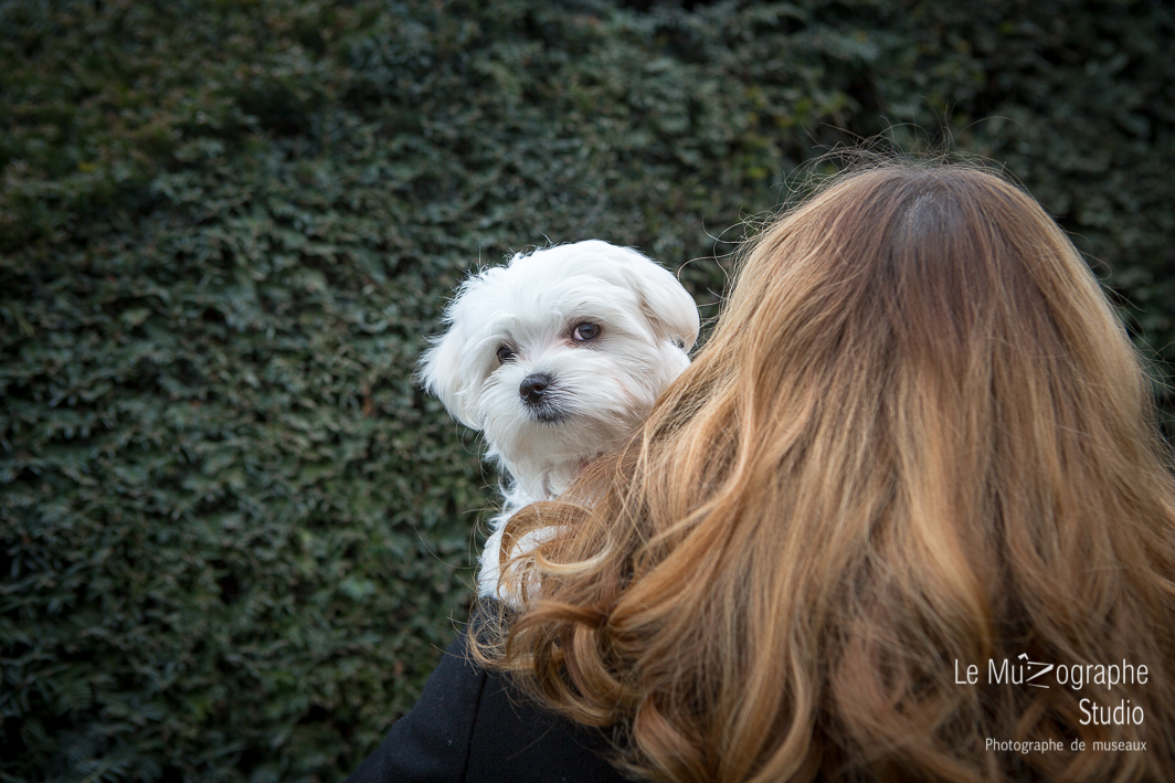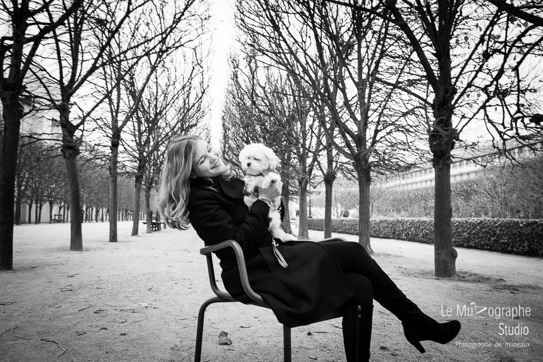 Résidant à Nice, Océane, la maitresse de Chipie a souhaité profiter d’un court WE à Paris, pour immortaliser les attitudes de chiot de son bichon. La séance bookée et réservée, nous convenons d’un mini parcours sur le thème « Paris », où Chipie fraichement vaccinée pourrait poser ses pattes sur un sol exempt de terre (non autorisé en raison des derniers vaccins). Nous optons pour le décor de la pyramide du Louvre et celui plus graphique du Palais Royal.