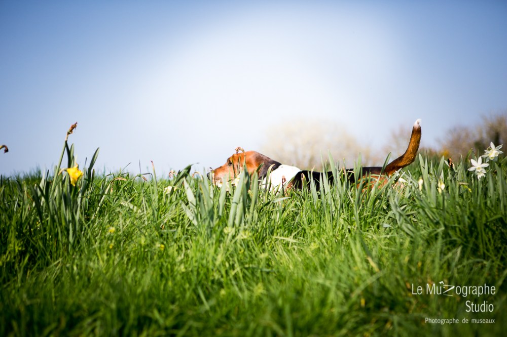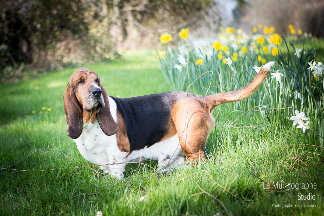 Une séance toute printanière avec Loulou, magnifique basset hound de 8 ans.
