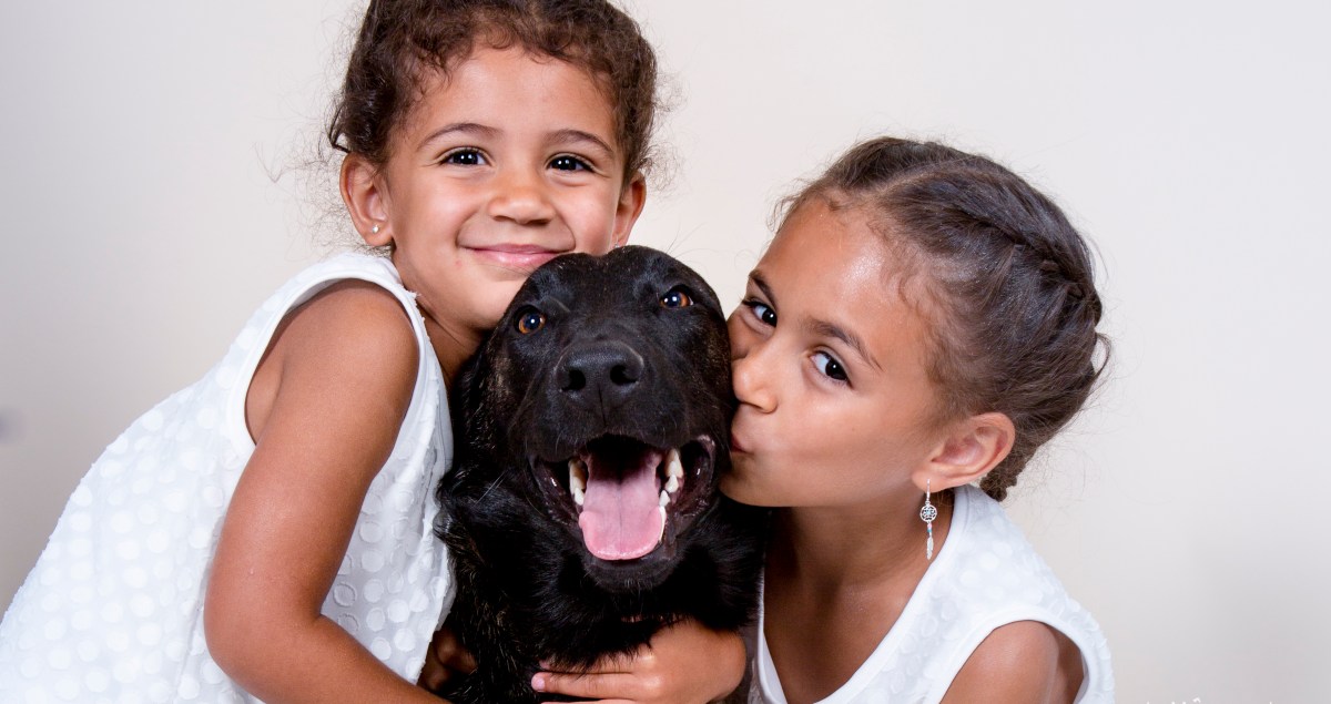 Tendresse et sport pour ce shoot, Narco étant un jeune chien plein de vie et de joie, mais la magie enfantine de Maëlle et Mayline a su apaiser la fougue de Narco à grands coups de câlins et bisous.
