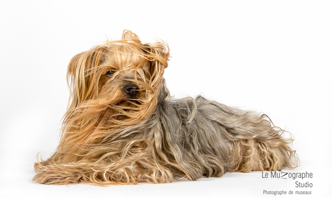 Une session façon « Dog Model » avec fond blanc et ventilateur, telle une séance mannequin, cheveux au vent !
