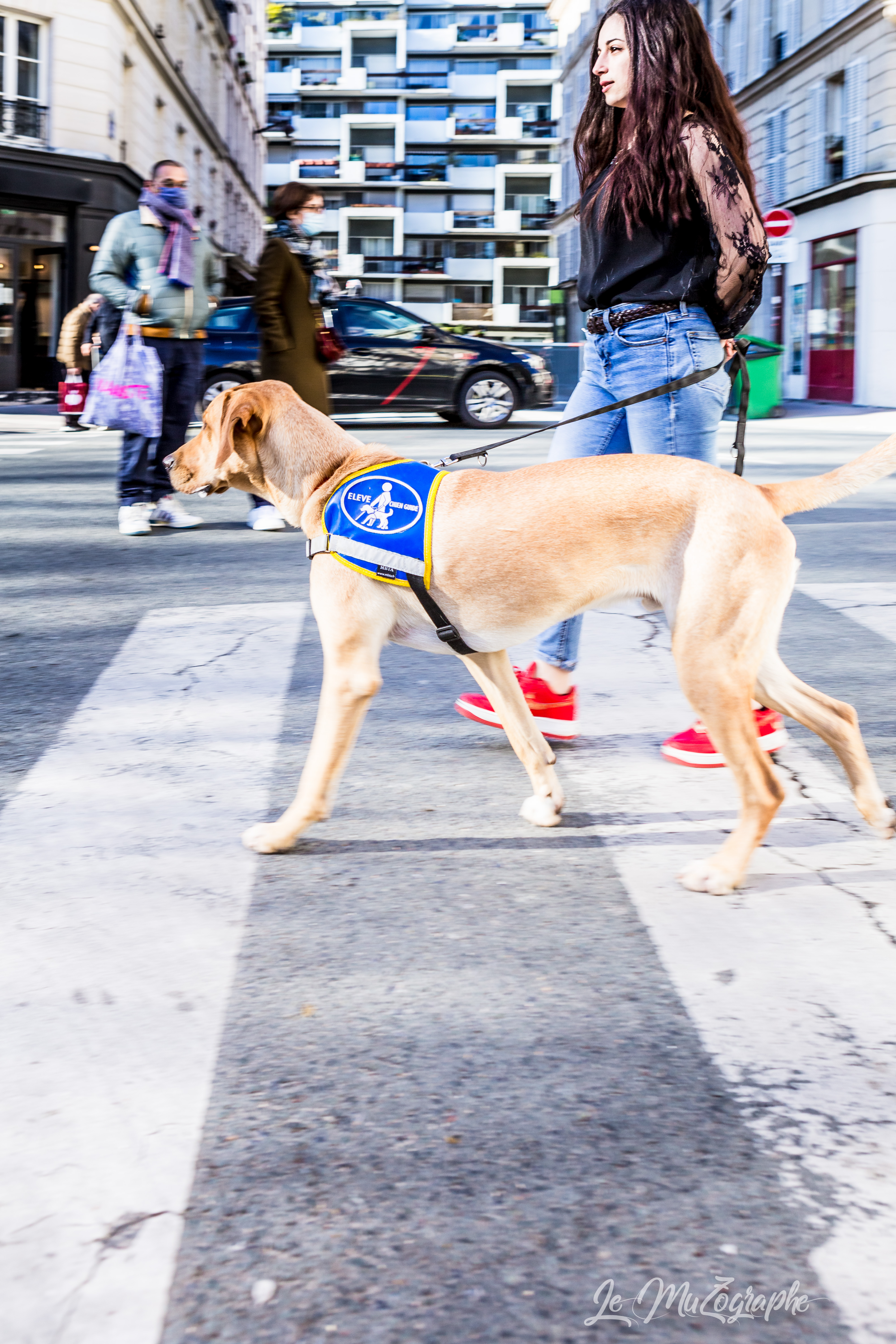Pim’s est un jeune labrador d’1 an, chien guide en apprentissage. Caroline est étudiante vétérinaire à Maisons Alfort. Coup de coeur l’un pour l’autre.