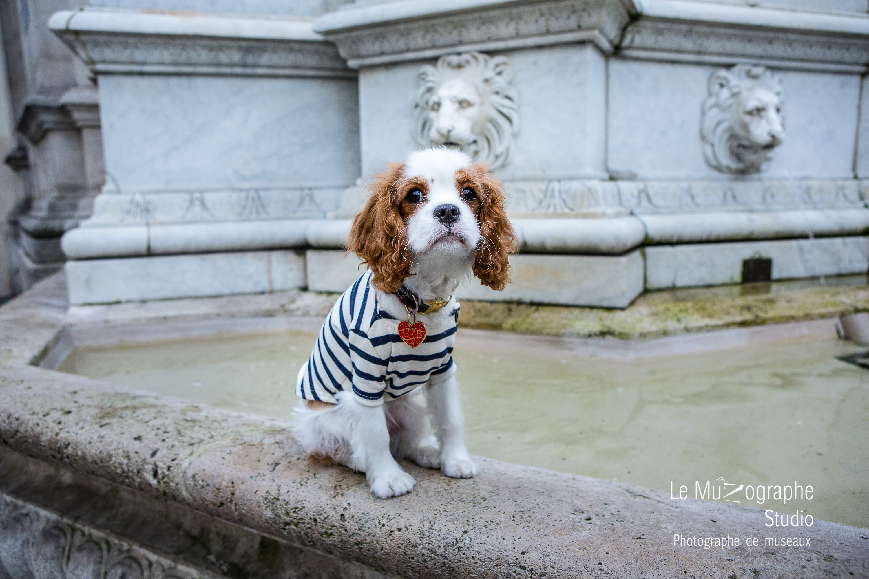 C’est ensuite rue Molière, toujours dans le 1er arrondissement, au pied de la sublime fontaine que nous avons poursuivi notre « dogumentaire » en tenue très chic : marinières Saint James, pour cet élégant binôme !
